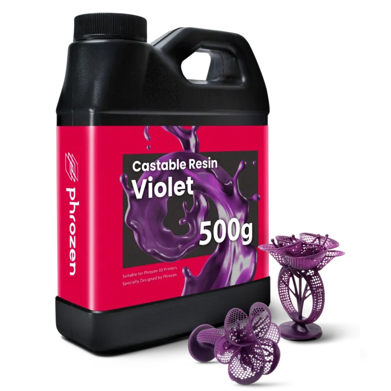 เรซิน Phrozen Wax-Like Violet มีส่วนผสมของแว็กซ์ ทำให้เผาไหม้ได้หมดจดและหล่อง่าย สามารถใช้ได้กับงานหล่ออัญมณีและงานหล่อทางทันตกรรม การหดตัวต่ำและความแม่นยำสูง