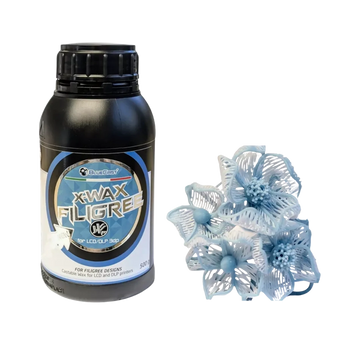 X-Wax Filigree เป็นเรซิน 3 มิติสำหรับงานจิวเวลรี ออกแบบมาเฉพาะสำหรับชิ้นงาน filigree ที่ต้องการความนิ่งของขนาด ความแม่นยำ พิมพ์ง่าย ผิวเรียบเนียน และหล่อขึ้นรูปได้ดี โดย X-Wax Filigree ไม่ได้มาแทนที่ X-Wax รุ่นมาตรฐาน แต่เป็นการเสริมให้การใช้งาน สมบูรณ์แบบยิ่งขึ้น X-Wax รุ่นมาตรฐาน มีส่วนผสม castable wax จริง 80% ให้คุณสมบัติการหล่อที่ยอดเยี่ยม ส่วน X-Wax Filigree ถูกออกแบบมาเพื่อการพิมพ์ที่ง่ายขึ้น เหมาะกับจิวเวลรี่ที่มีความบาง น้ำหนักเบา และต้องการรายละเอียดสูง ด้วยพื้นผิวที่เรียบเนียนและให้ความแม่นยำสูง ทำให้ X-Wax Filigree เหมาะอย่างยิ่งสำหรับการหล่อชิ้นงานขนาดเล็กที่ซับซ้อน เช่น ลวดลายโครงถักและ filigree รายละเอียดขนาดเล็ก